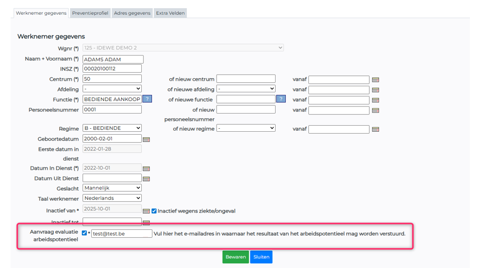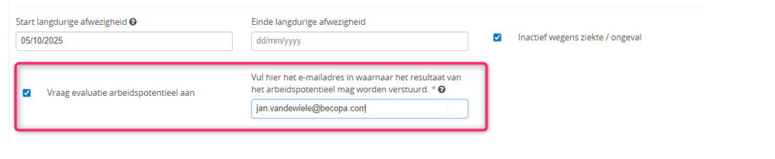 Vanaf 8 weken inactiviteit kan de 'Aanvraag tot evaluatie van het arbeidspotentieel' door jou worden aangevraagd.