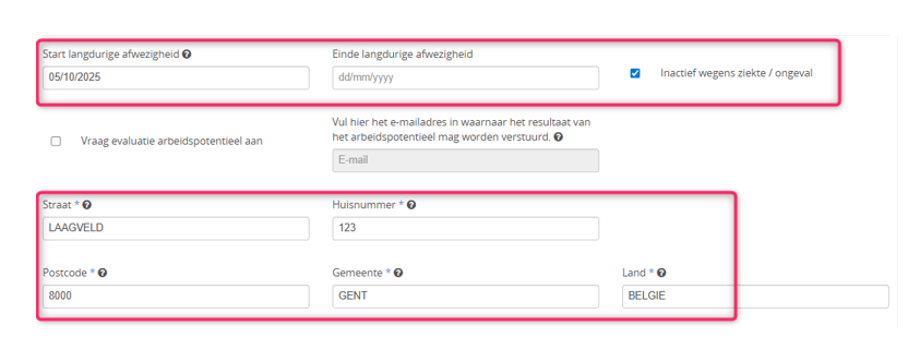 Vink aan of je werknemer inactief is door ziekte of ongeval.