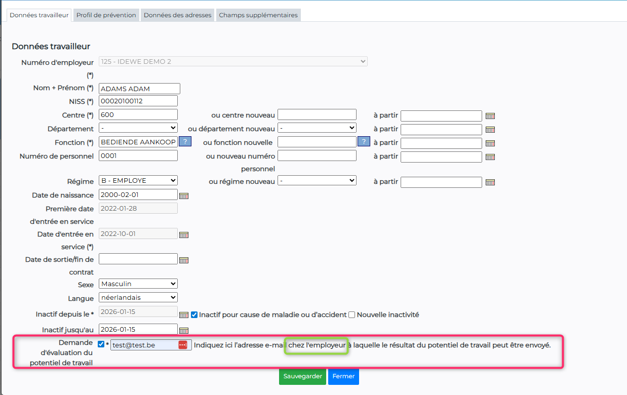 Dans ce cas, ajoutez également les données nécessaires à ce fichier. N’oubliez pas d’en informer votre bureau régional d’IDEWE. Nous pourrons ainsi nous assurer que toutes les informations sont traitées correctement.