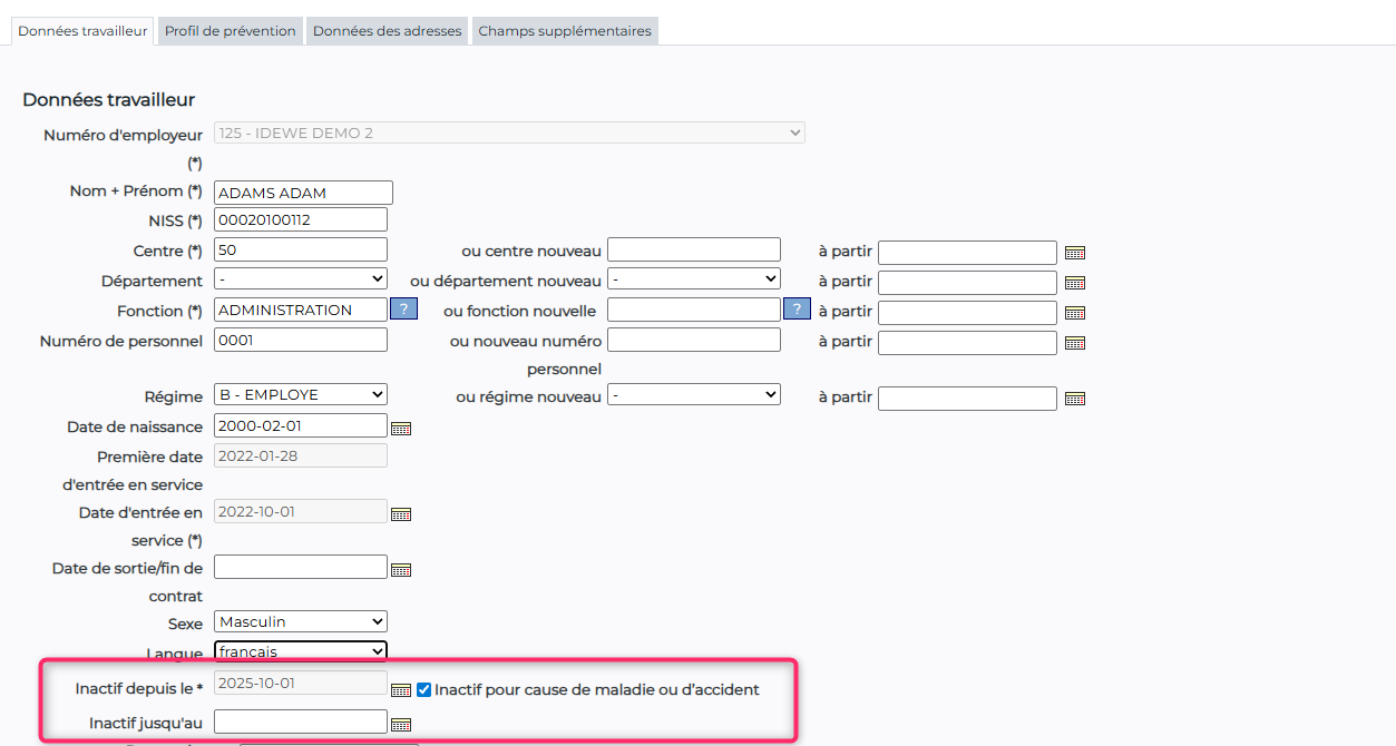 Pour ce faire, introduisez les dates de début et de fin de l’incapacité de travail sur la fiche du travailleur dans ElectrA ou dans «Gestion du Personnel» et nous assurerons le suivi pour vous. Nous informons votre travailleur dès que les 4 semaines d'incapacité de travail sont atteintes.